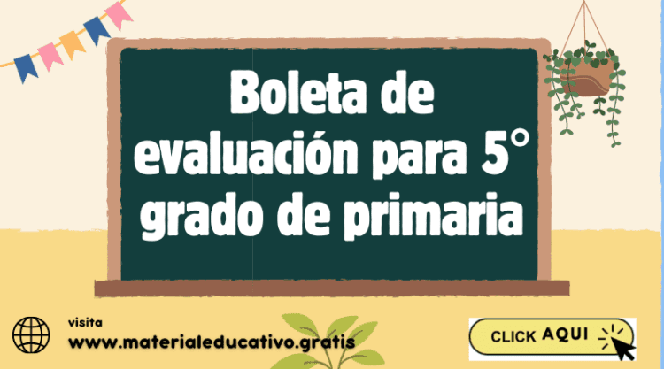 Boleta de evaluación para 5° grado de primaria
