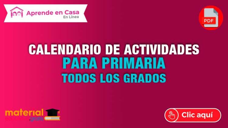 Calendario de actividades de Mayo - Junio de aprende en casa para todos los grados de Primaria