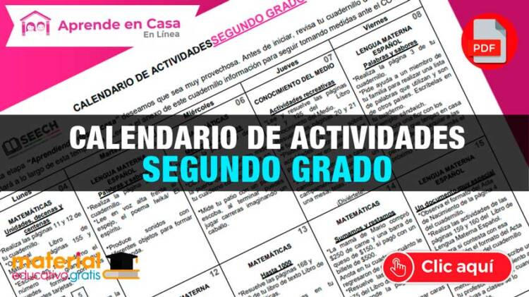 Calendario de actividades de aprende en casa para segundo grado