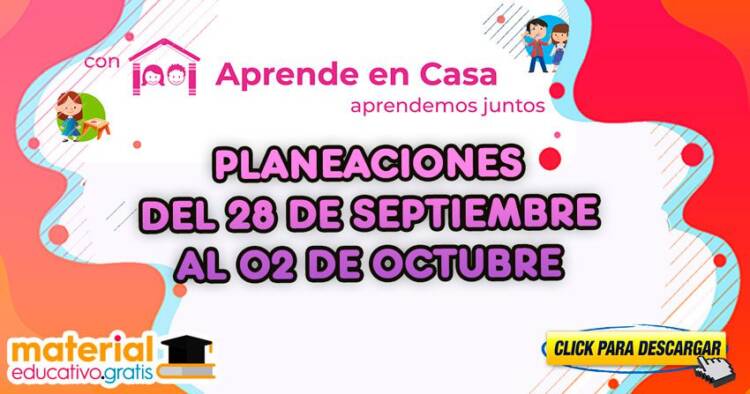 PLANEACIONES DEL 28 DE SEPTIEMBRE AL 02 DE OCTUBRE 2020 - 2021con actividades de acuerdo a los aprendizajes esperados de Aprende en Casa II