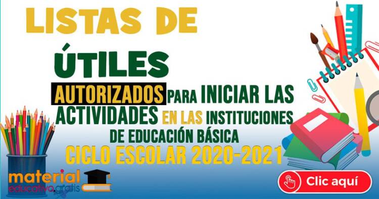 Lista de materiales y útiles escolares autorizados para iniciar las actividades en las instituciones de educación básica Ciclo escolar 2020-2021