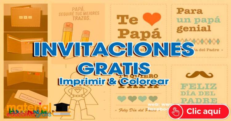 En muchas partes del mundo se celebra el día del padre la tercera semana de junio y aquí les dejamos estas fabula invitación para los padres en su día he aquí te dejamos, algunas tarje-titas para imprimir adornarlos e invitar a los Papás a una actividad del kinder, escuela, colegio, o para que sea un recuerdo para ellos.